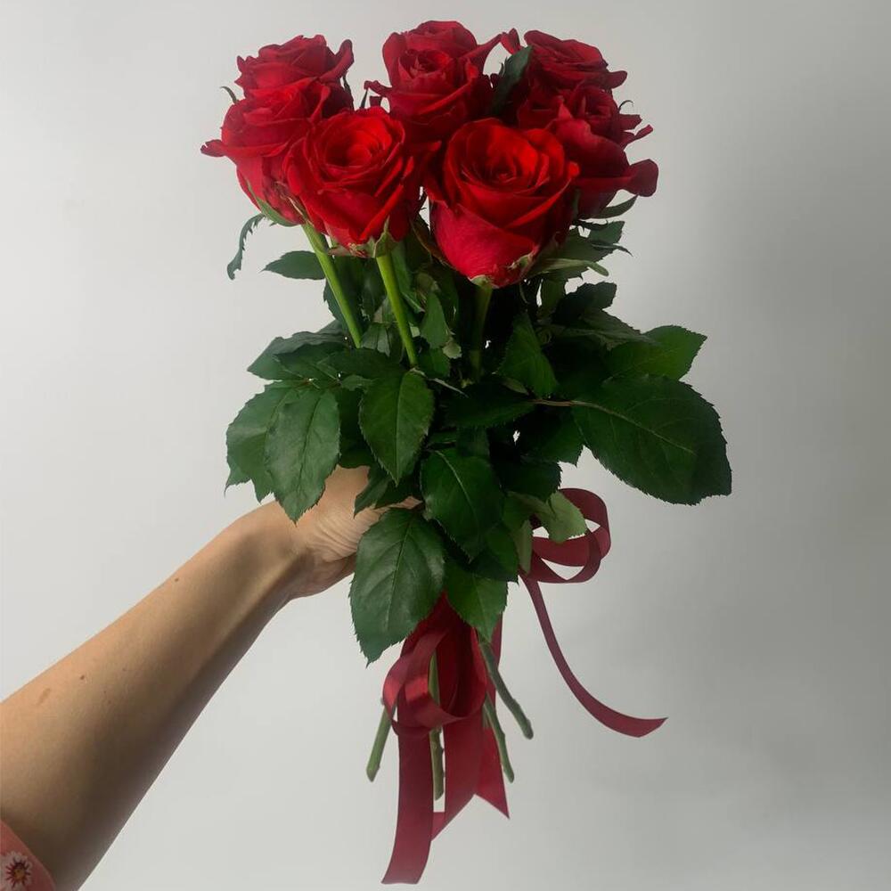 7 червоних троянд під стрічку
