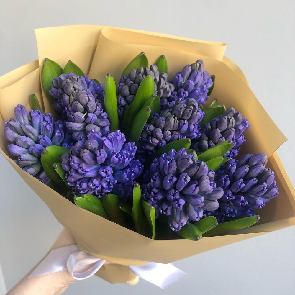 Гиацинт – 9 шт.Лента атласная – 1 шт.Упаковка дизайнерская – 1 шт.