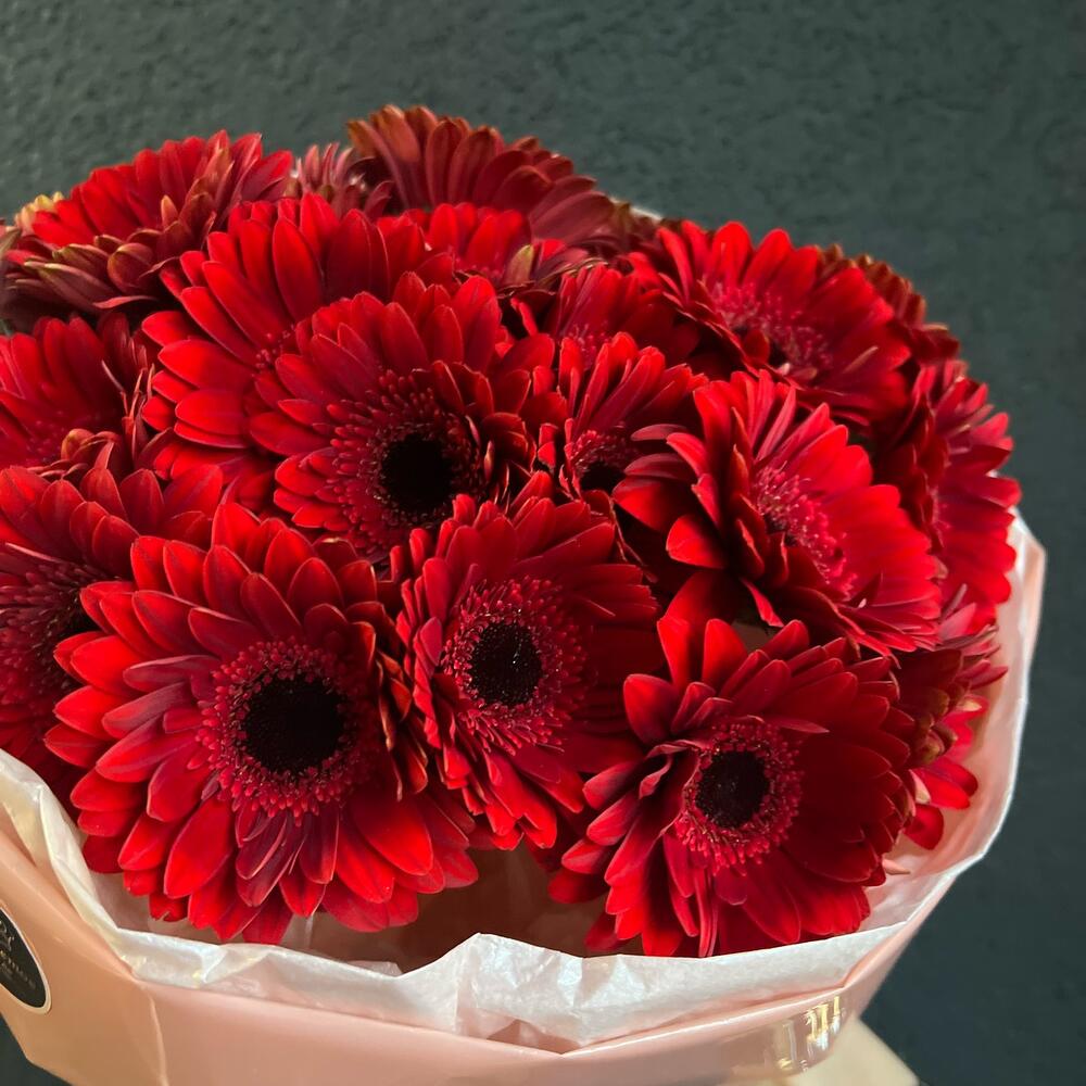Гербера – 25 шт.декоративная упаковка – 1 шт.Атласная лента – 1 шт.