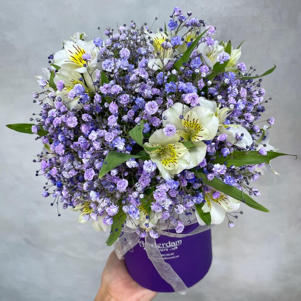 Коробка d12 – 1 шт.Оазис – 1 шт.Альстромерия – 7 шт.Гипсофила – 4 шт.
