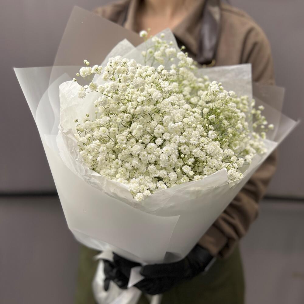 Гипсофила – 5 шт.Лента атласная – 2 шт.Тишью – 3 шт.Пленка матовая – 4 шт.