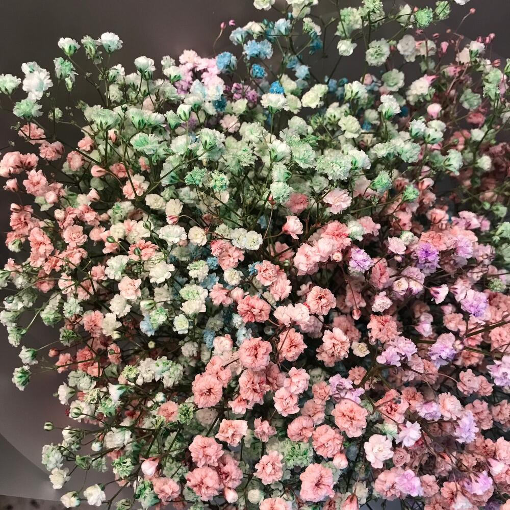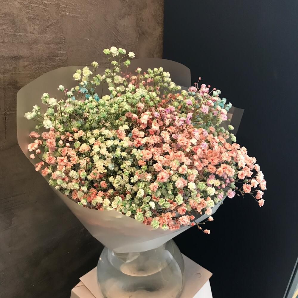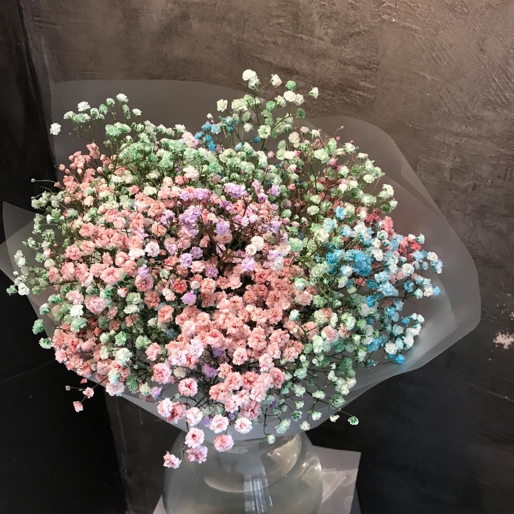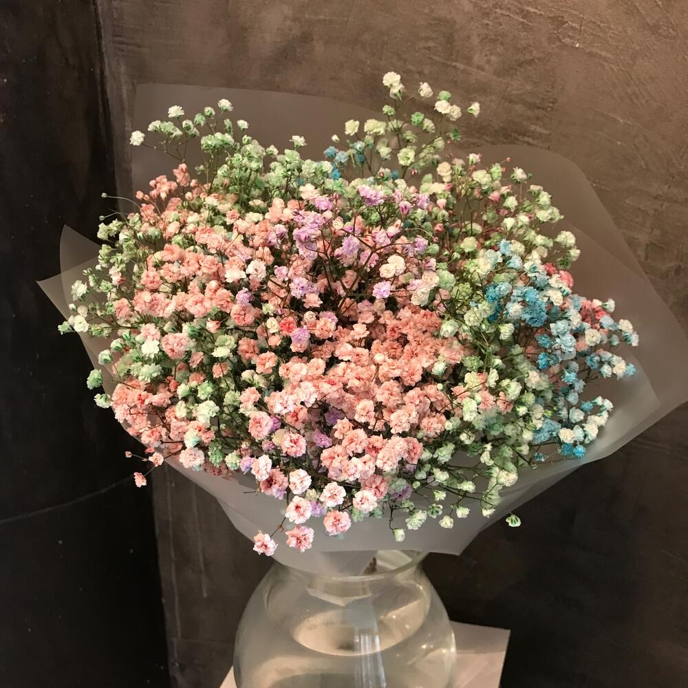Лента – 1 шт.Пленка матовая – 1 шт.Средство для продления жизни цветов – 1 шт.гипсофила радужная – 9 шт.