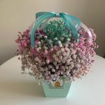 “Сиреневый туман” – композиция из гипсофилы в шляпной коробке