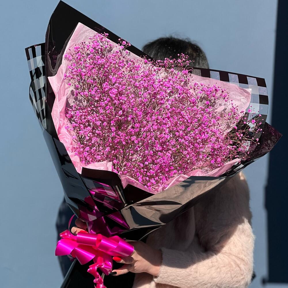 Гипсофила – 7 шт. Упаковка дизайнерская – 7 шт. Лента – 1 шт.