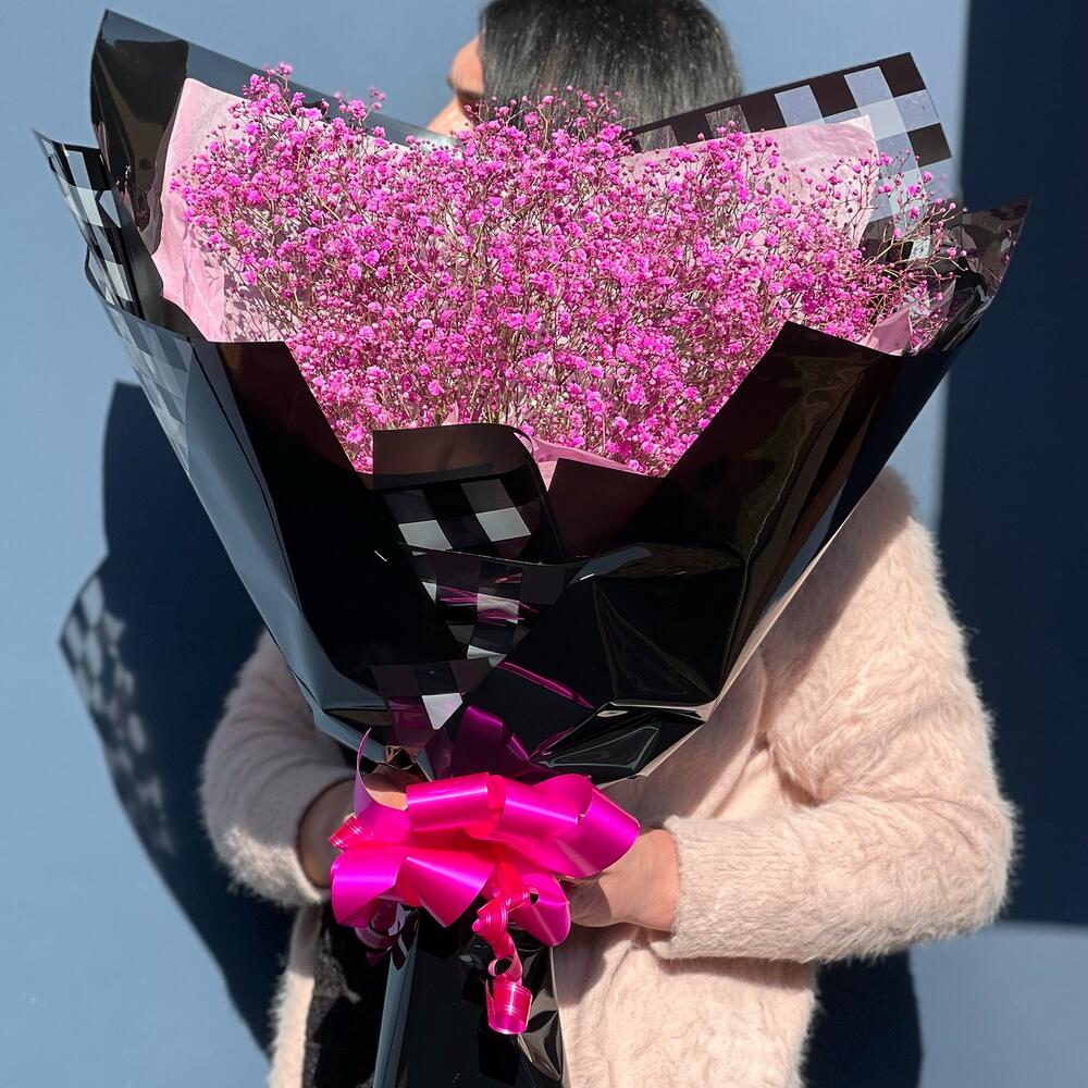 Нежный букет из гипсофилы в стильном оформлении Black Edition