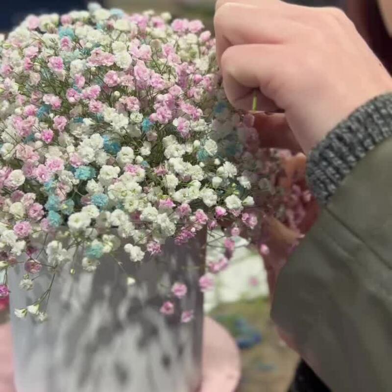 Коробка шляпная – 1 шт.Оазис флористический – 1 шт.гипсофила радужная – 4 шт.