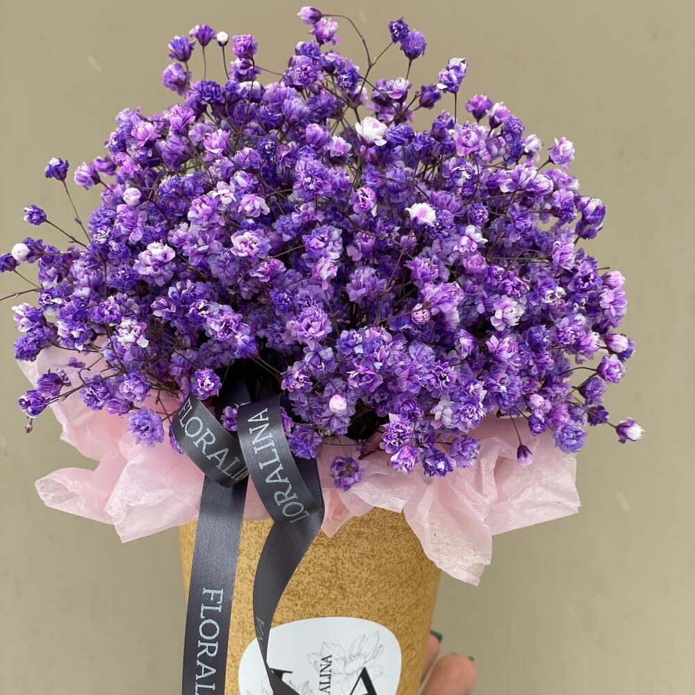 Стаканчик с гипсофилой – отличный вариант небольшого презента к основному подарку или просто так,без повода)Композиция имеет небольшой размер,ее удобно доставить домой или на работу Также она со временем превращается в сухоцвет и будет долго радовать своей красотой и … Показать ещёукрашать дом или рабочее место