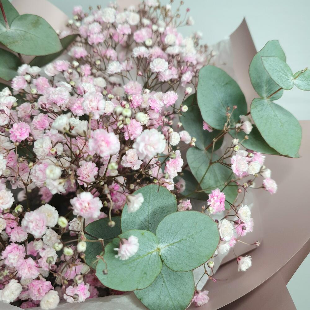 Гипсофила – 2 шт.Эвкалипт – 3 шт.Упаковка дизайнерская – 2 шт.