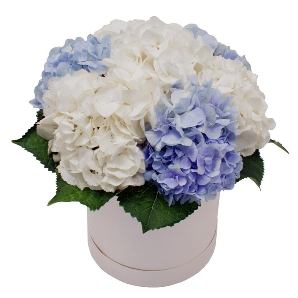 Гортензия – 7 шт.Шляпная коробка – 1 шт.Оазис флористический – 2 шт.