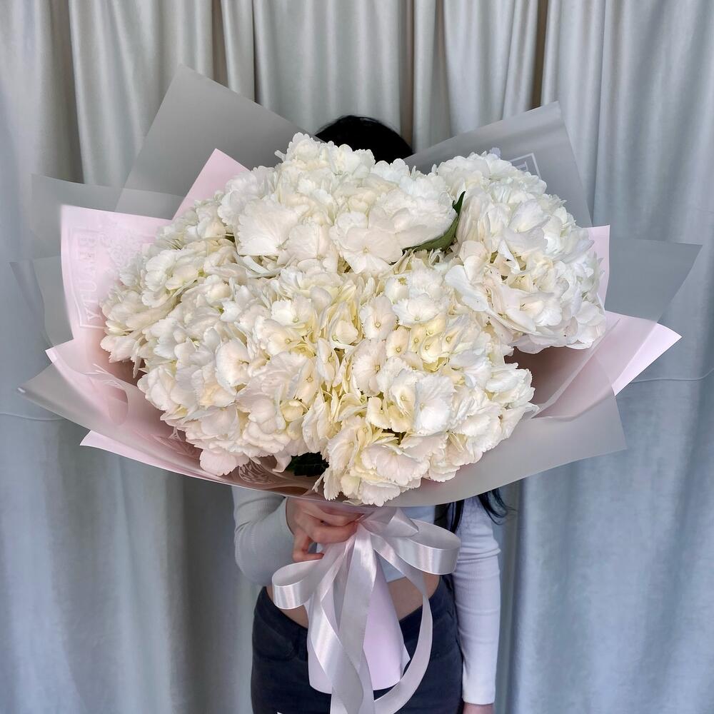 Букет из белых гортензий «Сюрприз для Любимой»