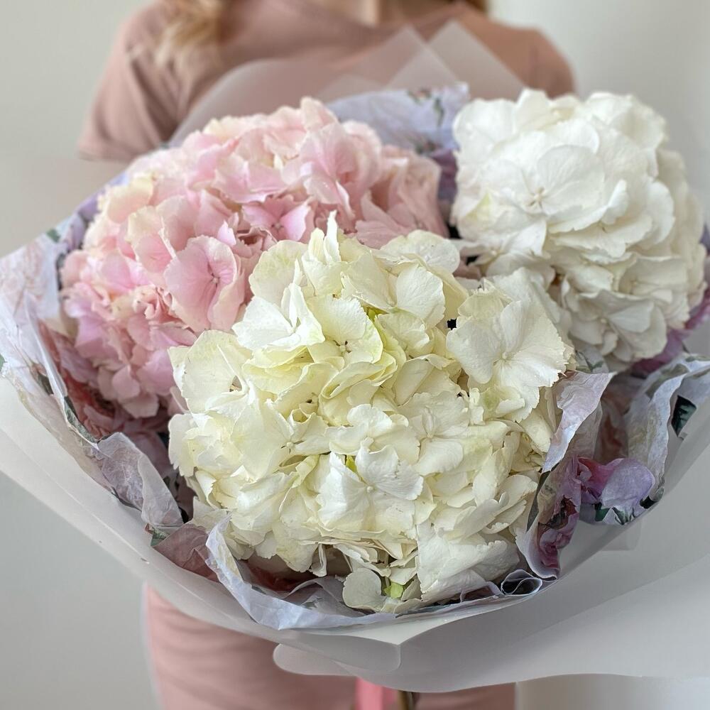 Монобукет из розовых и белых гортензий