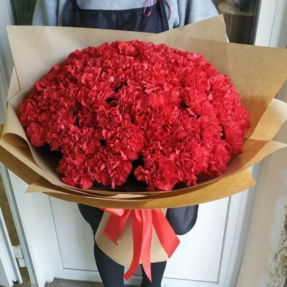 Букет 101 Красная Гвоздика в упаковке