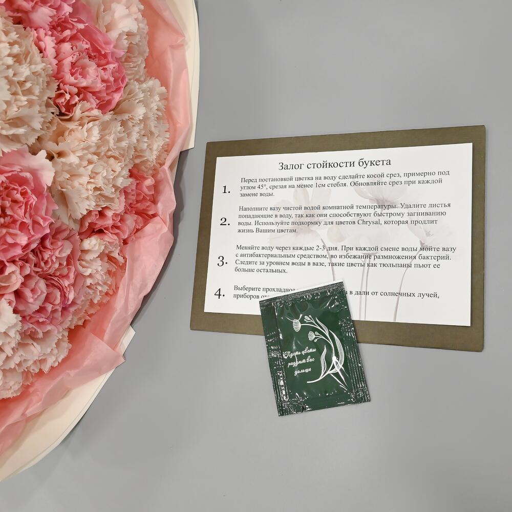- Сроки возврата: Претензии по качеству букета принимаются в течение 24 часов с момента его получения.