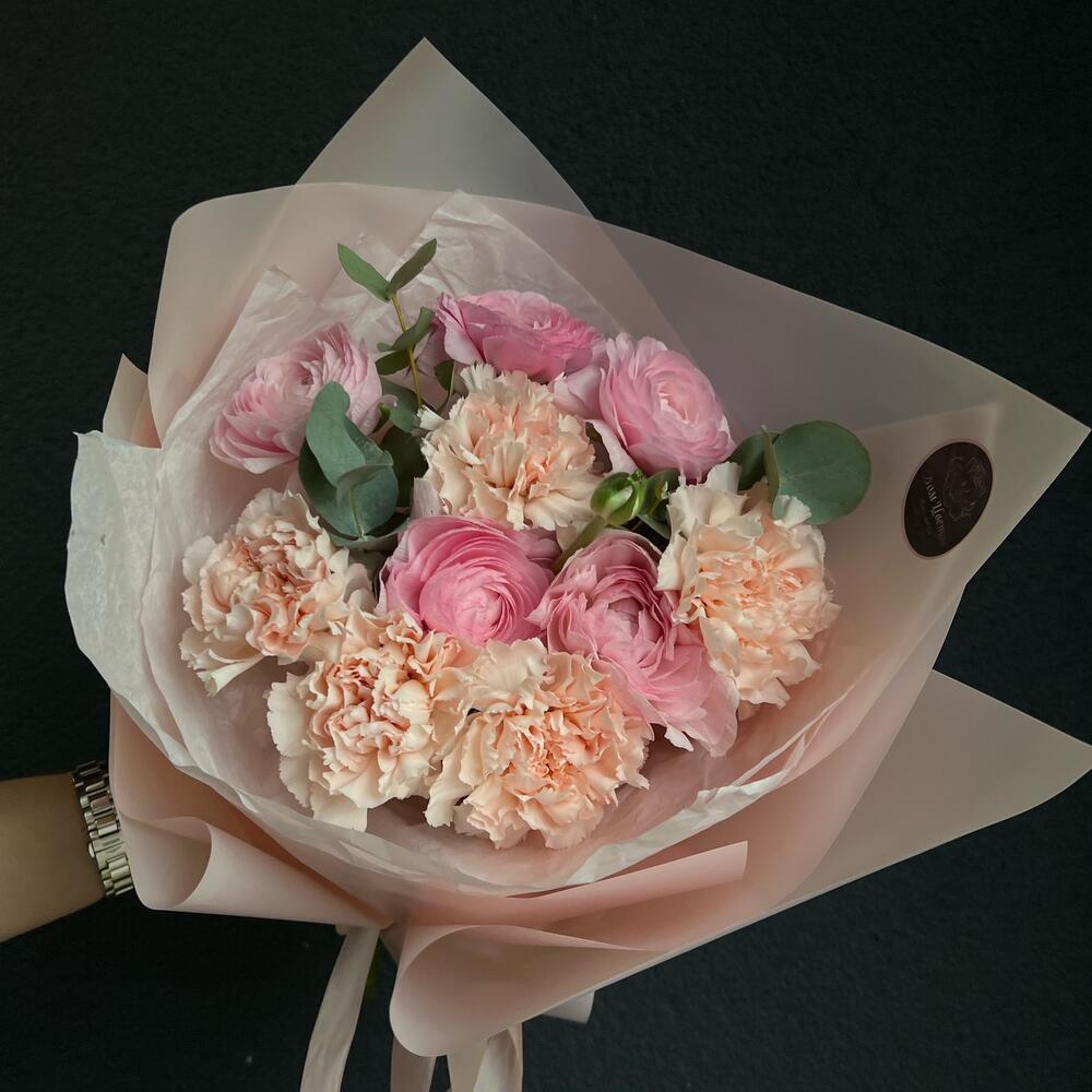 Букет из ранункулюсов и диантусов