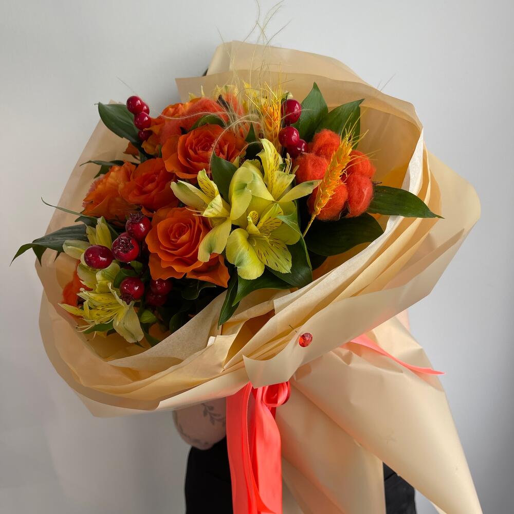 Рыжий букет с розами