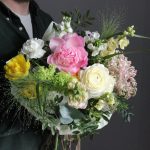Садовый букет с ранункулюсами и пионовидными розам