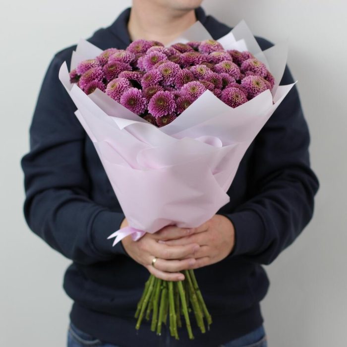 Хризантема Сантини – 21 шт.Лента атласная – 1 шт.Упаковка дизайнерская – 4 шт.