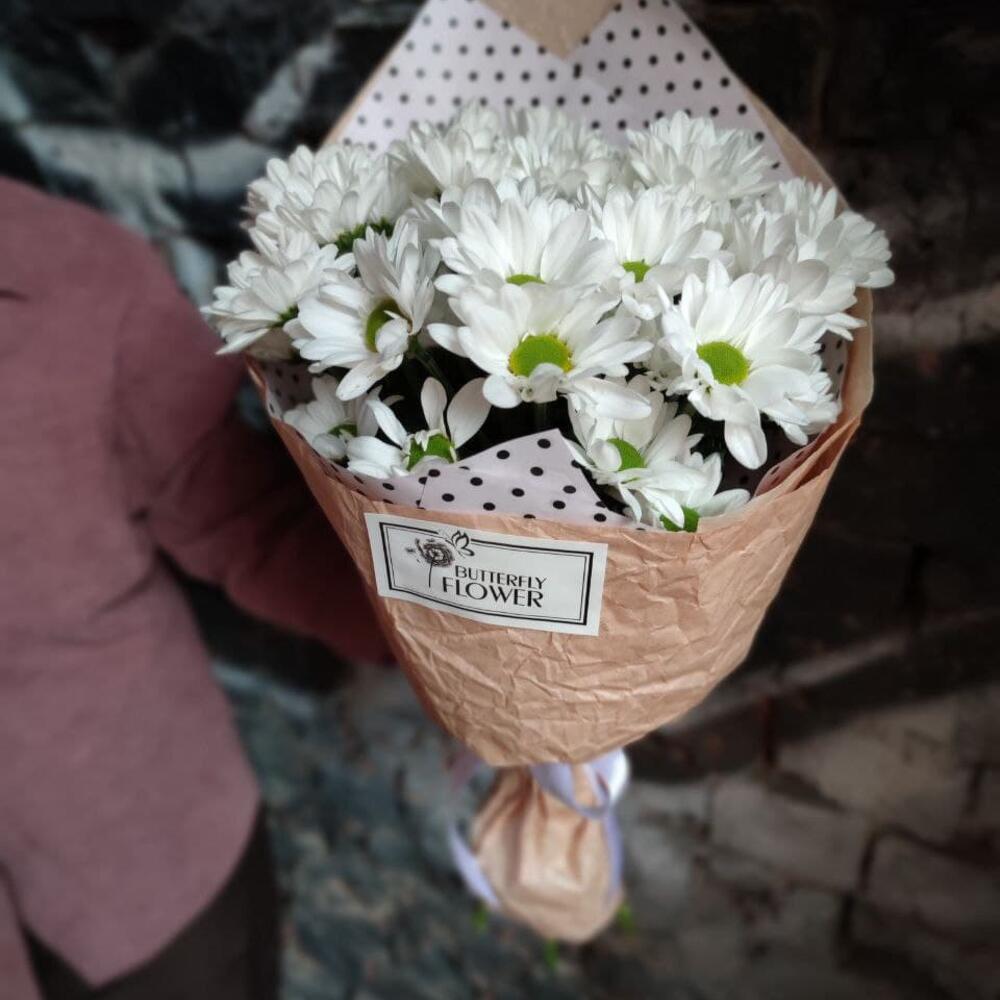 Букет из 5 белых кустовых хризантем