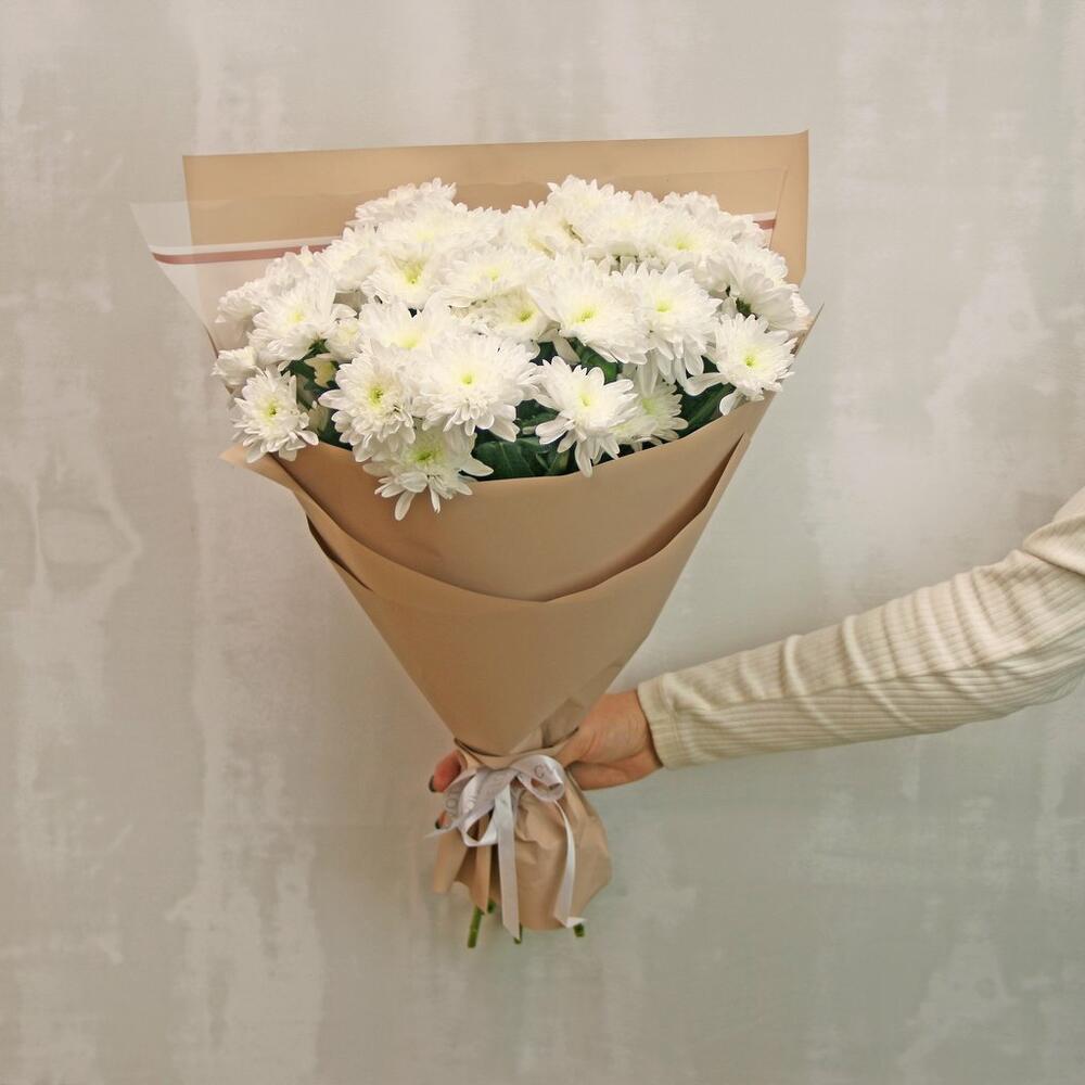 Букет из 7 белых кустовых хризантем в стильной упаковке
