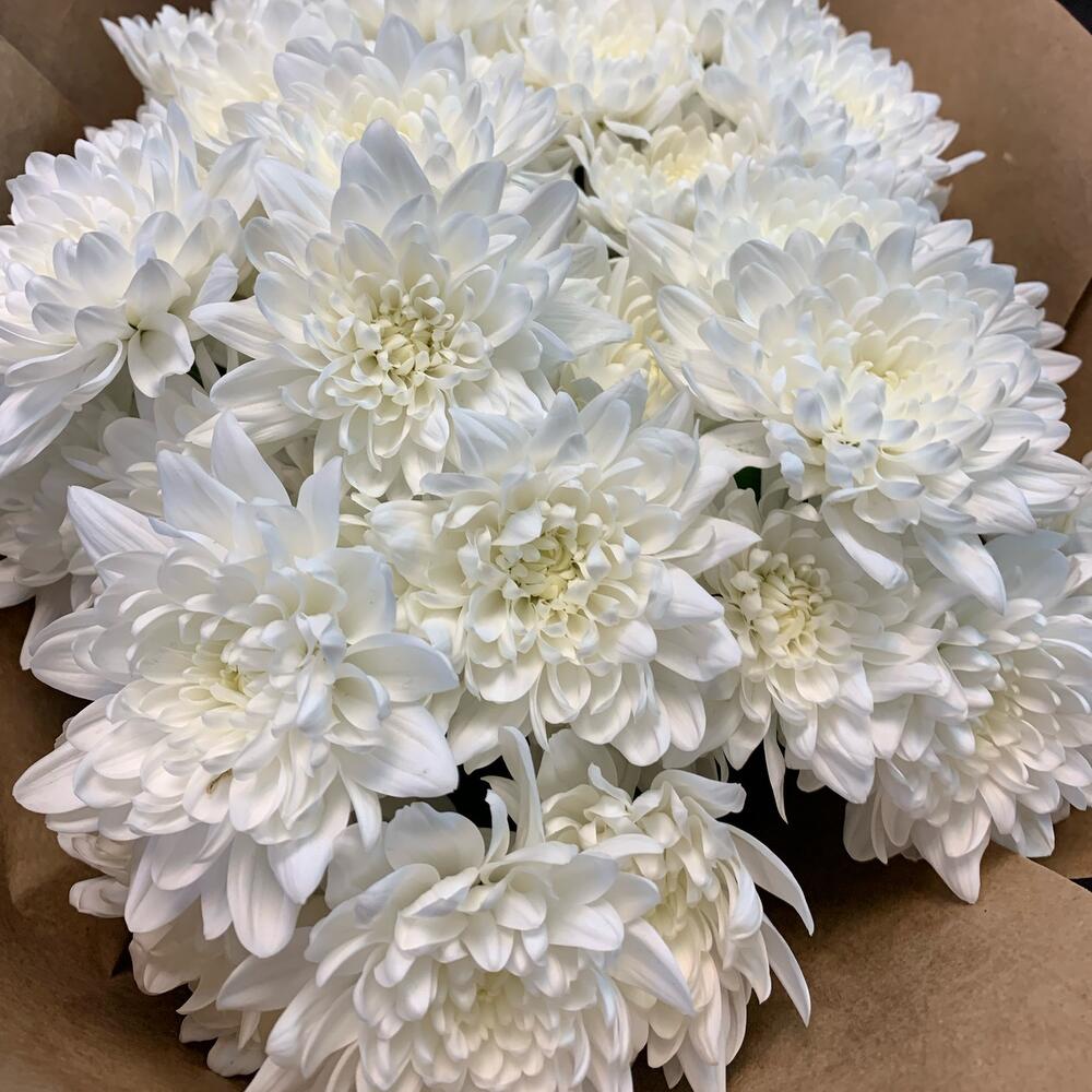 Лента – 1 шт.Хризантема кустовая – 7 шт.Упаковка крафт – 1 шт.