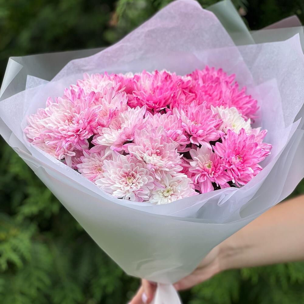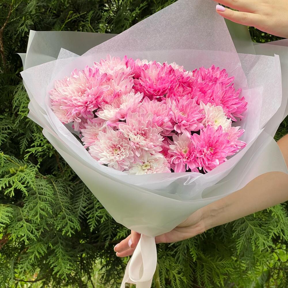 Пленка матовая – 1 шт.Хризантема крашеная – 5 шт.Тишью белое – 1 шт.