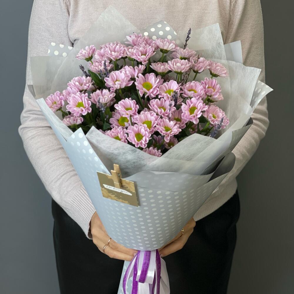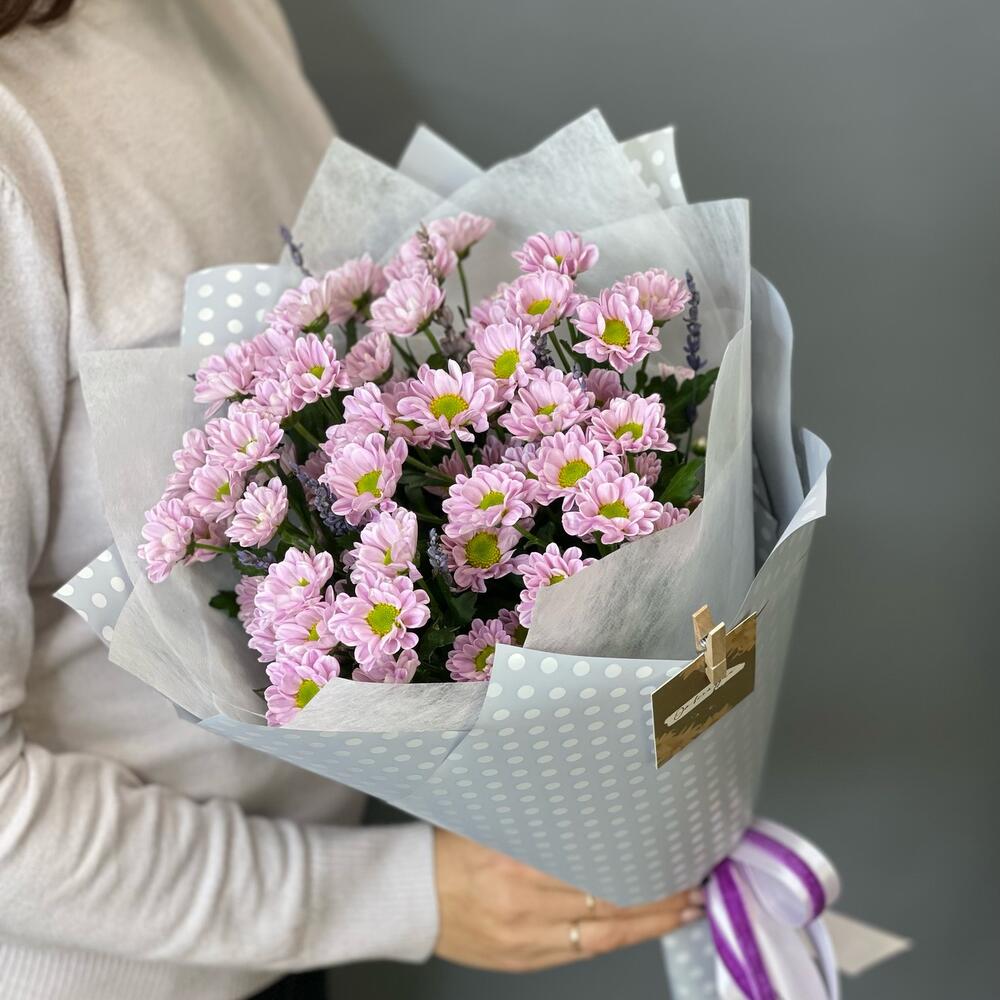 Букет с нежной кустовой хризантемой "Лавандовое лето"