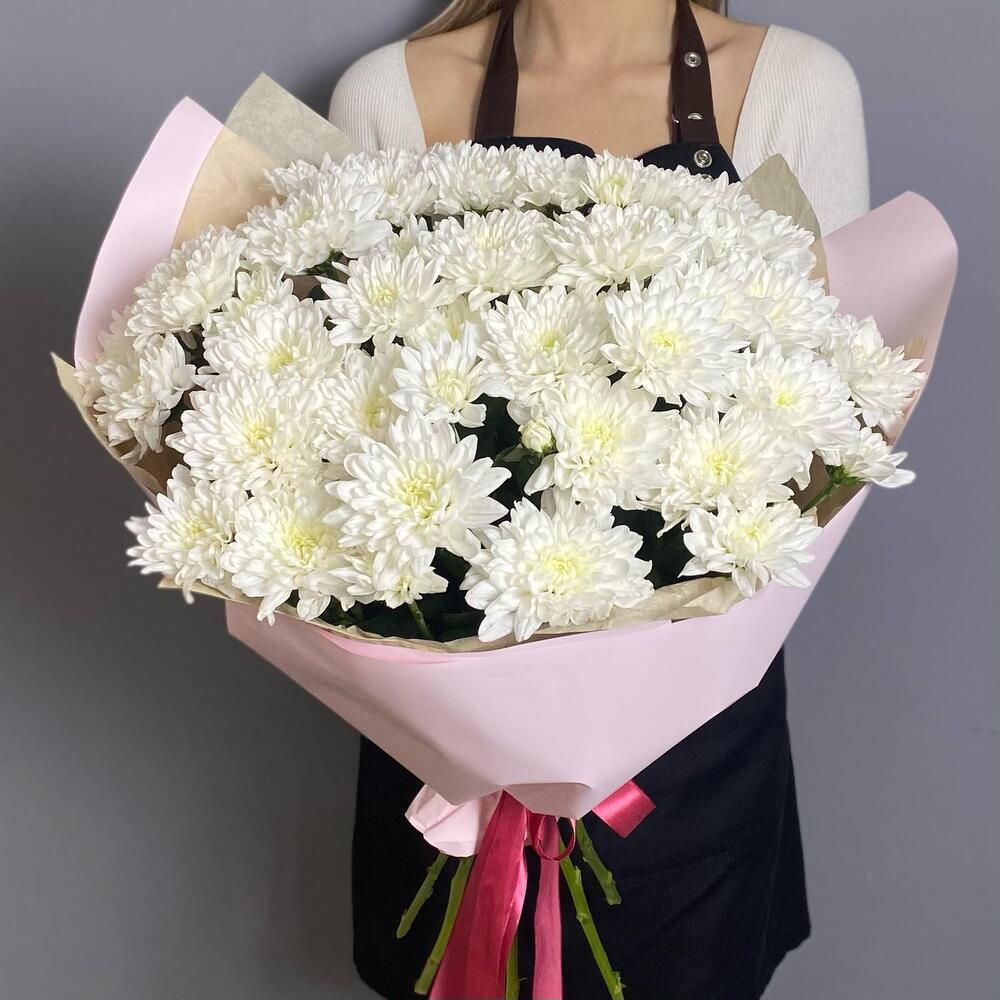 Хризантема кустовая – 7 шт.Лента атласная – 1 шт.Упаковка дизайнерская – 1 шт.
