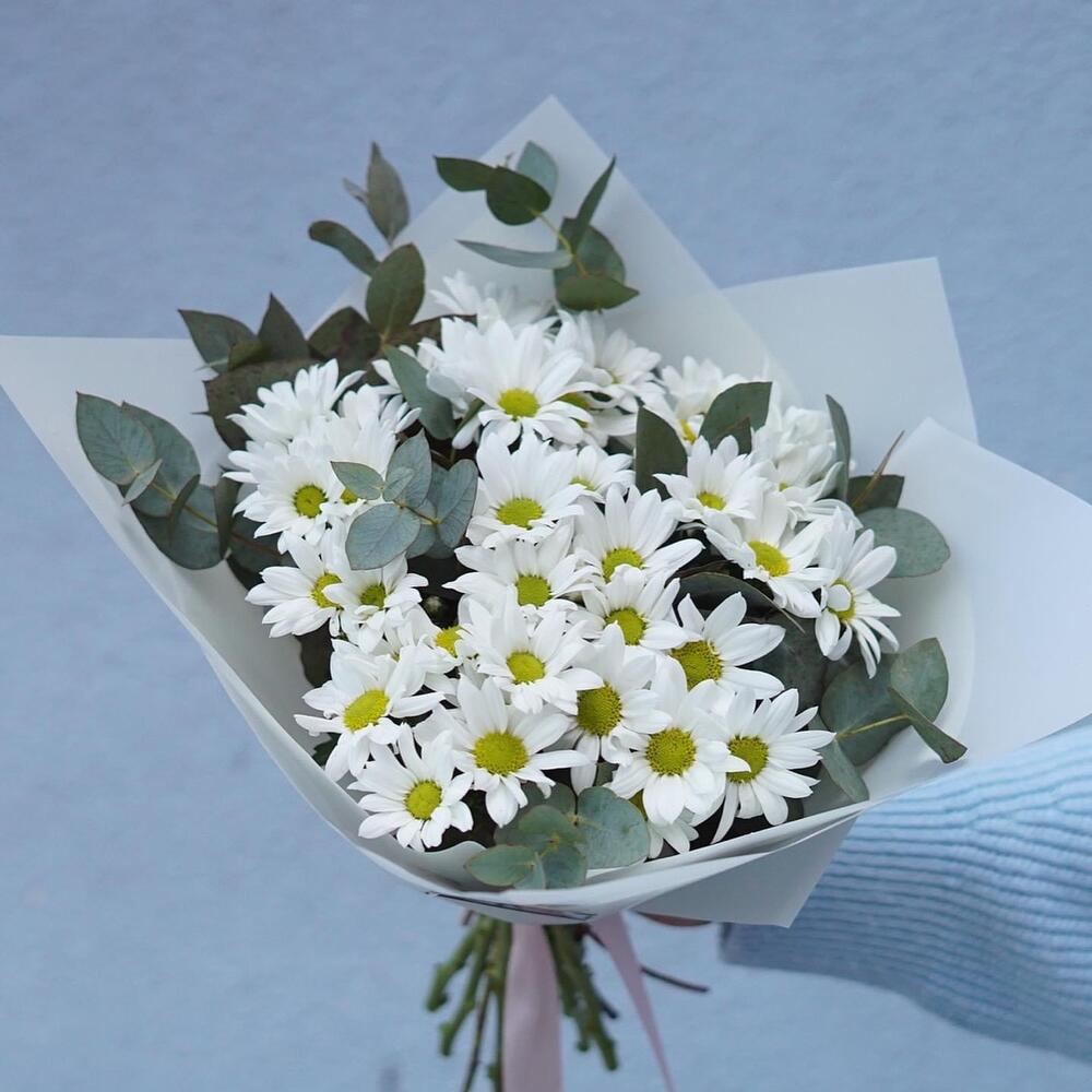 15 белых кустовых хризантем