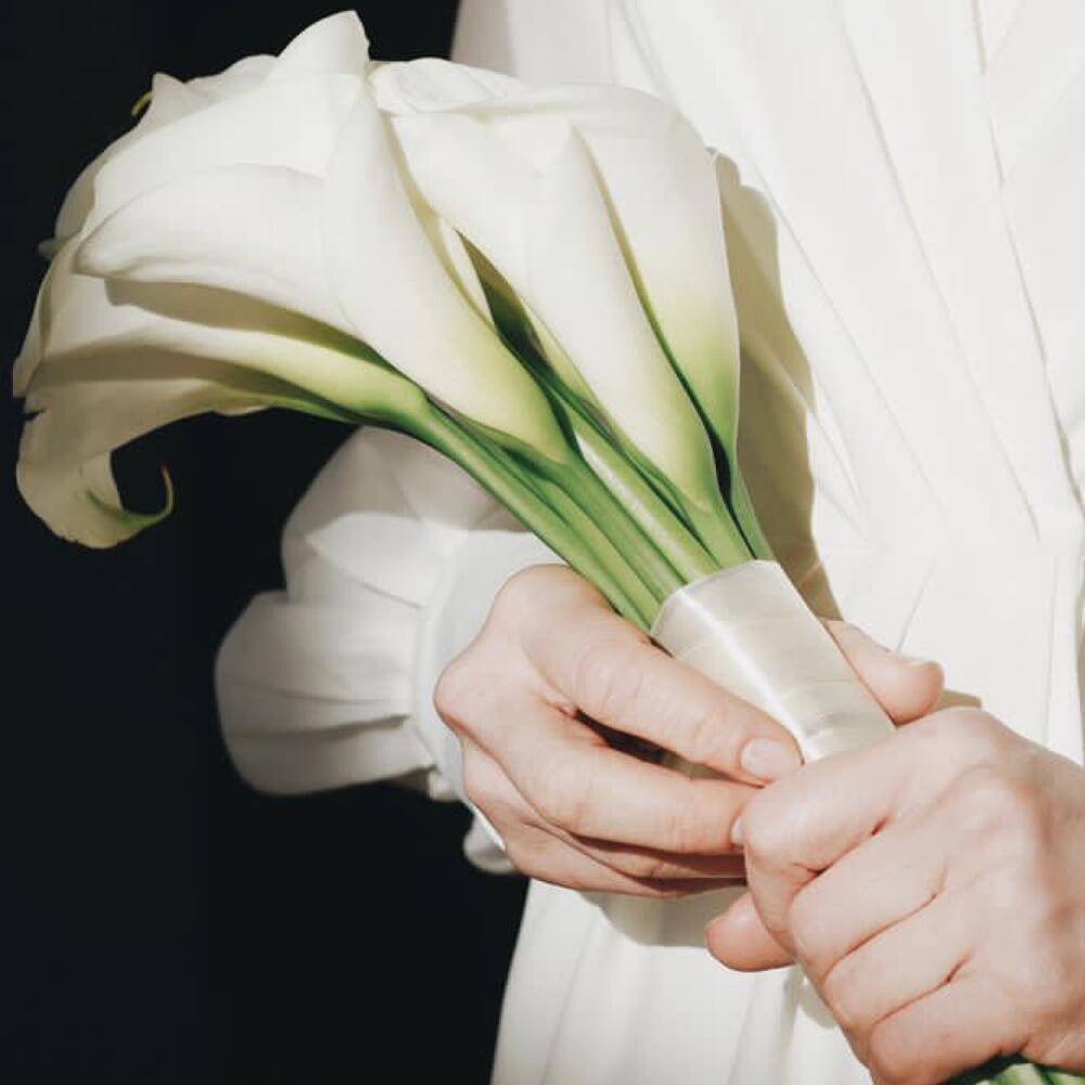 Лента атласная – 1 шт.Калла белая – 13 шт.