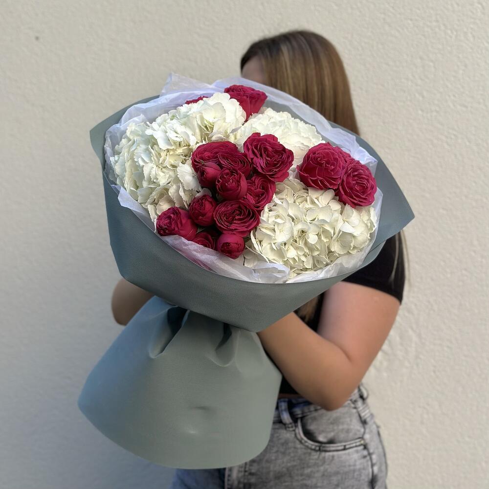 Гвоздики, Кустовые розы, Лизиантусы, Пионовидные розы, Розы