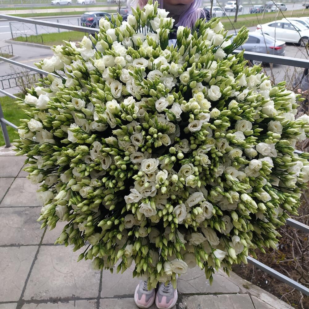 эустома белая – 101 шт.Упаковка – 1 шт.Лента атласная – 1 шт.