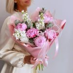 Розовые зефирные пионы и ароматная белая маттиола в нежном букете для самой любимой девушки.К каждому букету мы прикладываем:- открытку с Вашими пожеланиями- инструкцию по уходу за букетом- пакетик кризала для продления жизни цветам