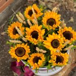 Чудесная композиция в коробке из подсолнухов и декоративными колосками