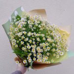 Салал – 5 шт.Лента атласная – 2 шт.Упаковка дизайнерская – 3 шт.матрикария (полевая ромашка) – 15 шт.