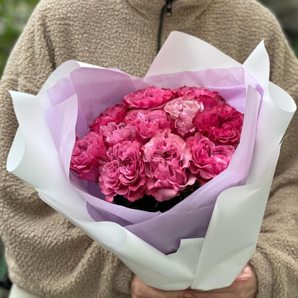 11 кудрявых розовых пионовидных роз