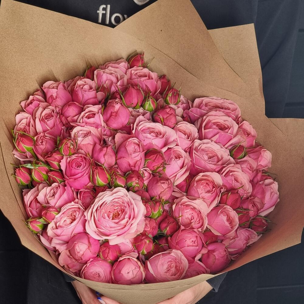 роза силва пинк пионовидная – 15 шт.Крафт упаковка – 1 шт.Лента атласная – 1 шт.
