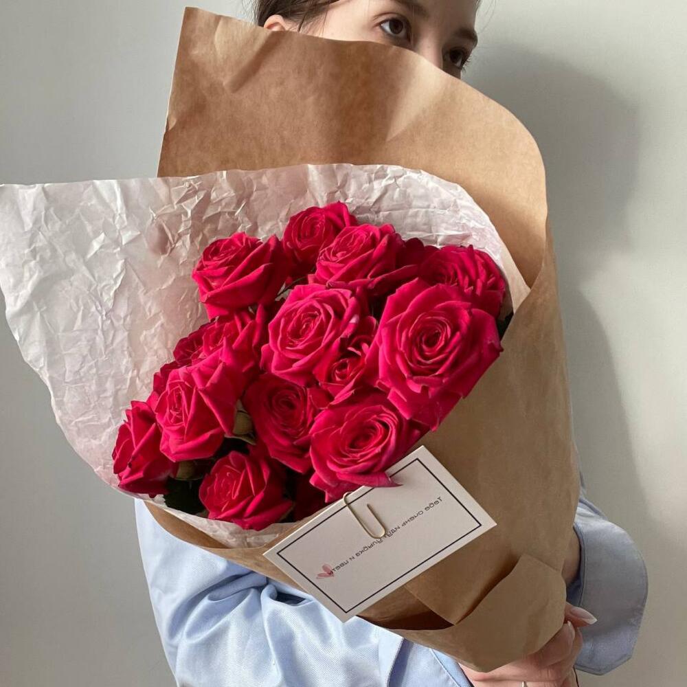 Красная кустовая роза – 3 шт.Крафт упаковка – 1 шт.