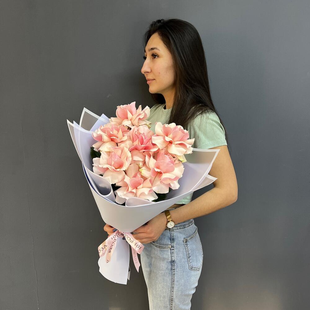 7 нежно-розовых французских роз