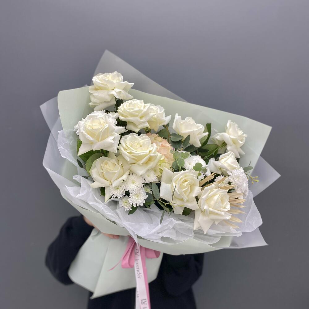Гвоздики, Кустовые розы, Лизиантусы, Пионовидные розы, Розы