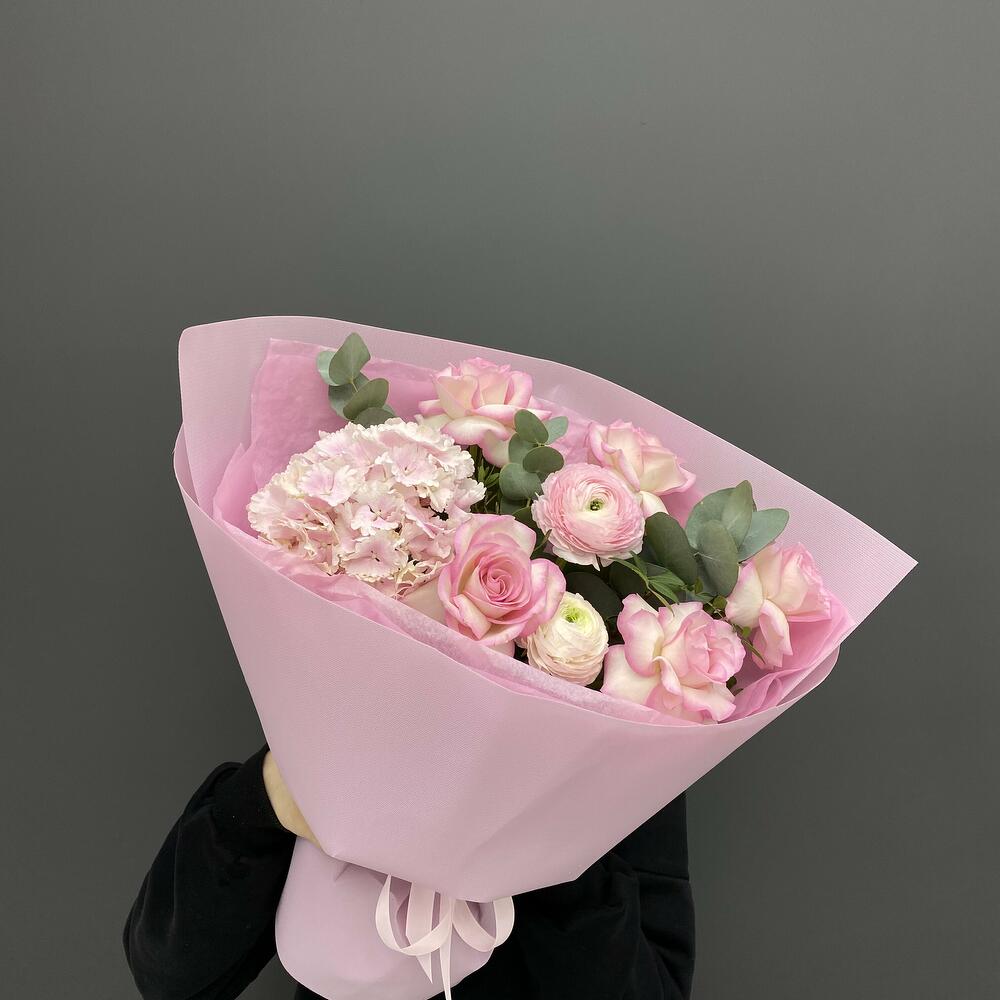 Альстромерии, Кустовые розы, Лизиантусы, Пионовидные розы, Розы, Ромашки