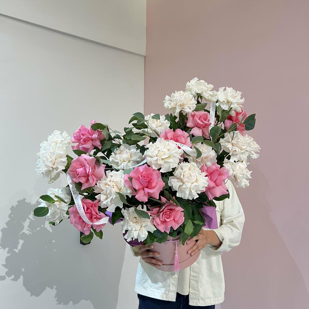 Гвоздики, Кустовые розы, Лизиантусы, Пионовидные розы, Розы