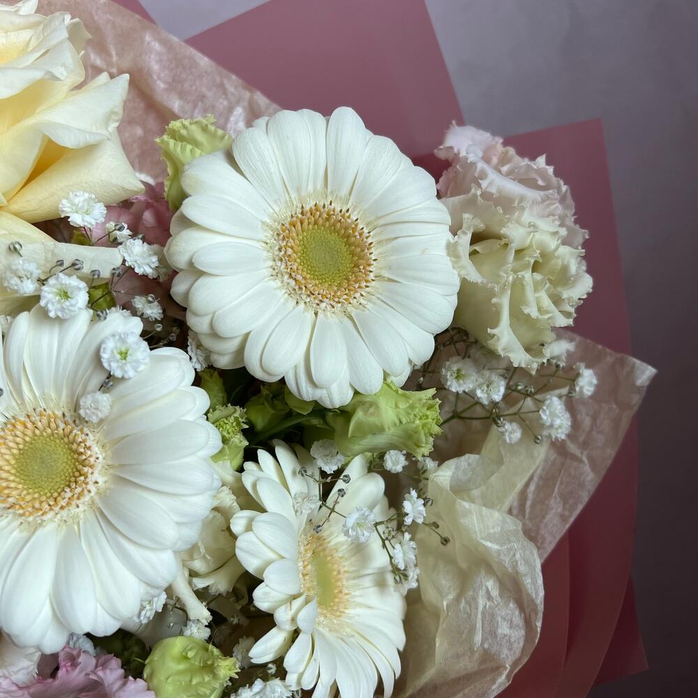 Категории: Герберы, Гипсофила, Лизиантусы, Розы
