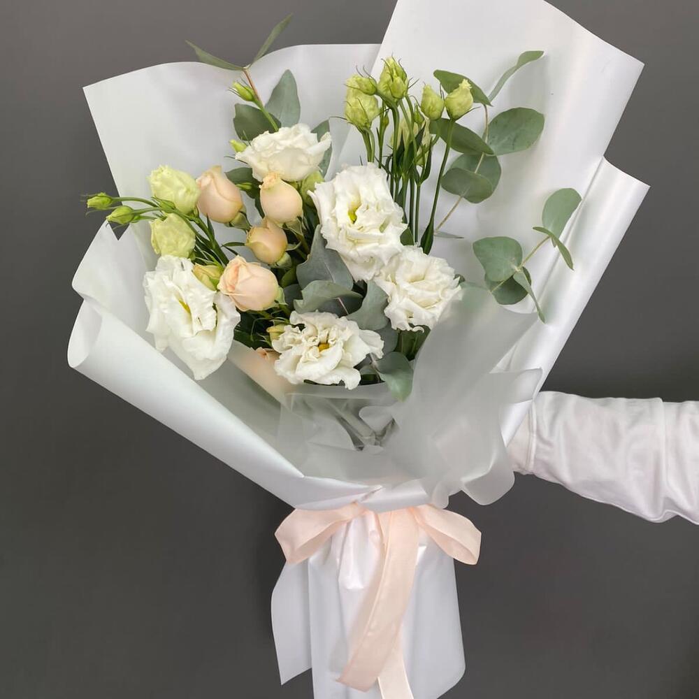 Альстромерии, Гвоздики, Кустовые розы, Лизиантусы, Розы, Хризантемы