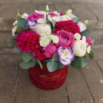 Цилиндр из кустовых роз, хризантема, вибурнума