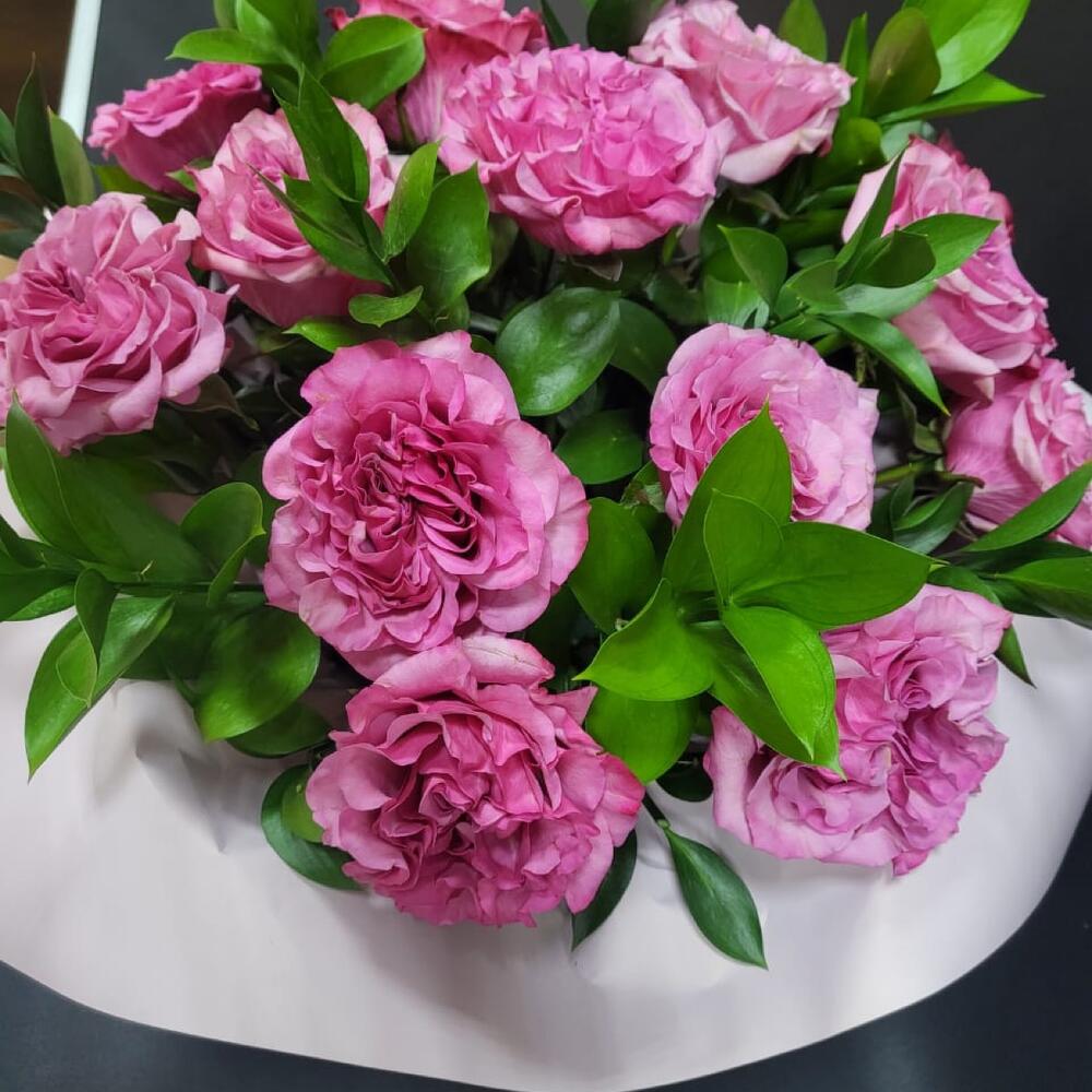 Гвоздики, Кустовые розы, Пионовидные розы, Розы
