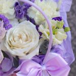 Цветы в сиреневой сумочке: нежный комплимент