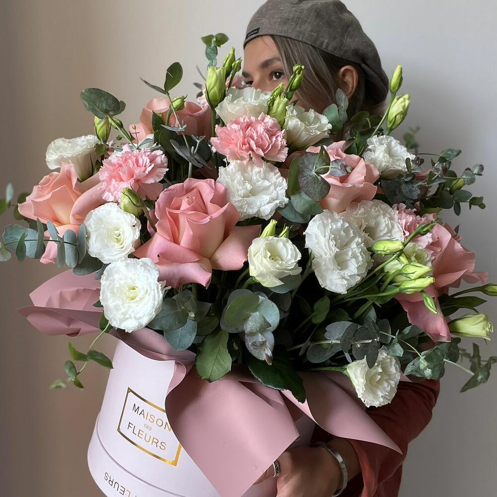 Гвоздики, Кустовые розы, Лизиантусы, Пионовидные розы, Розы