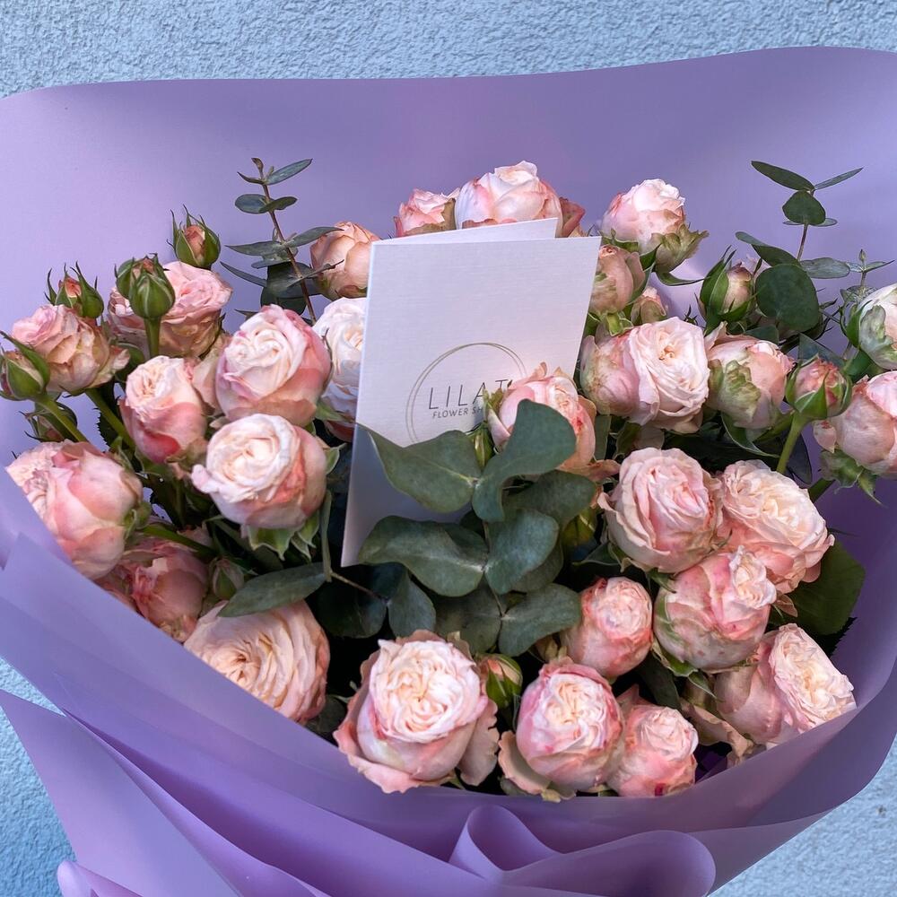 Гвоздики, Кустовые розы, Лизиантусы, Пионовидные розы, Розы