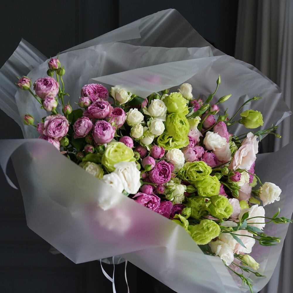 Кустовые розы, Лизиантусы, Пионы, Розы, Хризантемы