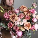 Кофе и зефир – Букет с пионами и пионовидными розами